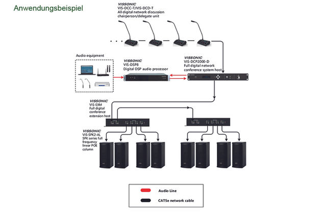 • Wird direkt von VIS-2000-x Konferenzzentralen oder über die VIS-EXM Erweiterungseinheit gespeist.