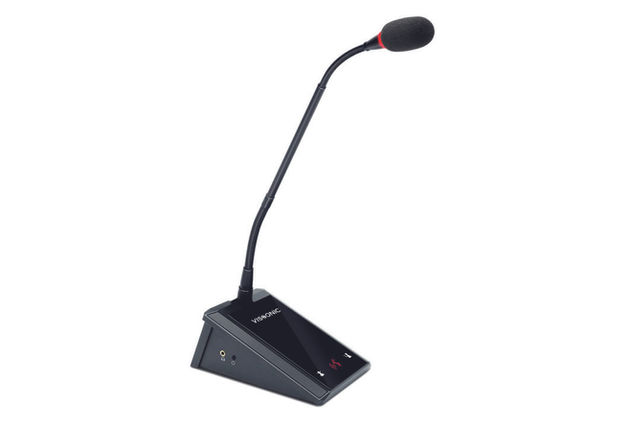 - Präsidentensprechstelle: Eine Mikrofonaktivierungstaste, eine Taste für Zuteilung anderer Sprechstellen und eine Taste zum Ablehnen, bzw. Ausschalten anderer Sprechstellen.